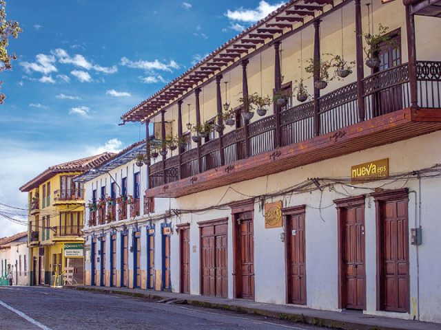 Antioquian architecture mark has frozen in time at Salamina, hence its touristic appeal. A precious group of houses made of waddle and daub, covered by mud tiles, with eaves that pretend to provide shade to uneven streets, mold a unique ambient that can only be felt in Salamina, Caldas. Balconies attached on the top floors, painted with brilliant colors and adorned with showy flowers as well as gates, decorated with baroque incrustations that give an idea of the perfection with which Salamina artisans worked wood in the past.